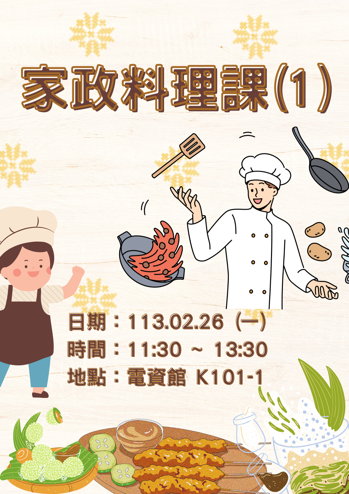 113年02月26日(一) 113年03月18日(一) 113年04月29日(一) 113年05月20日(一) 113年06月03日(一) 11:30~13:30 |